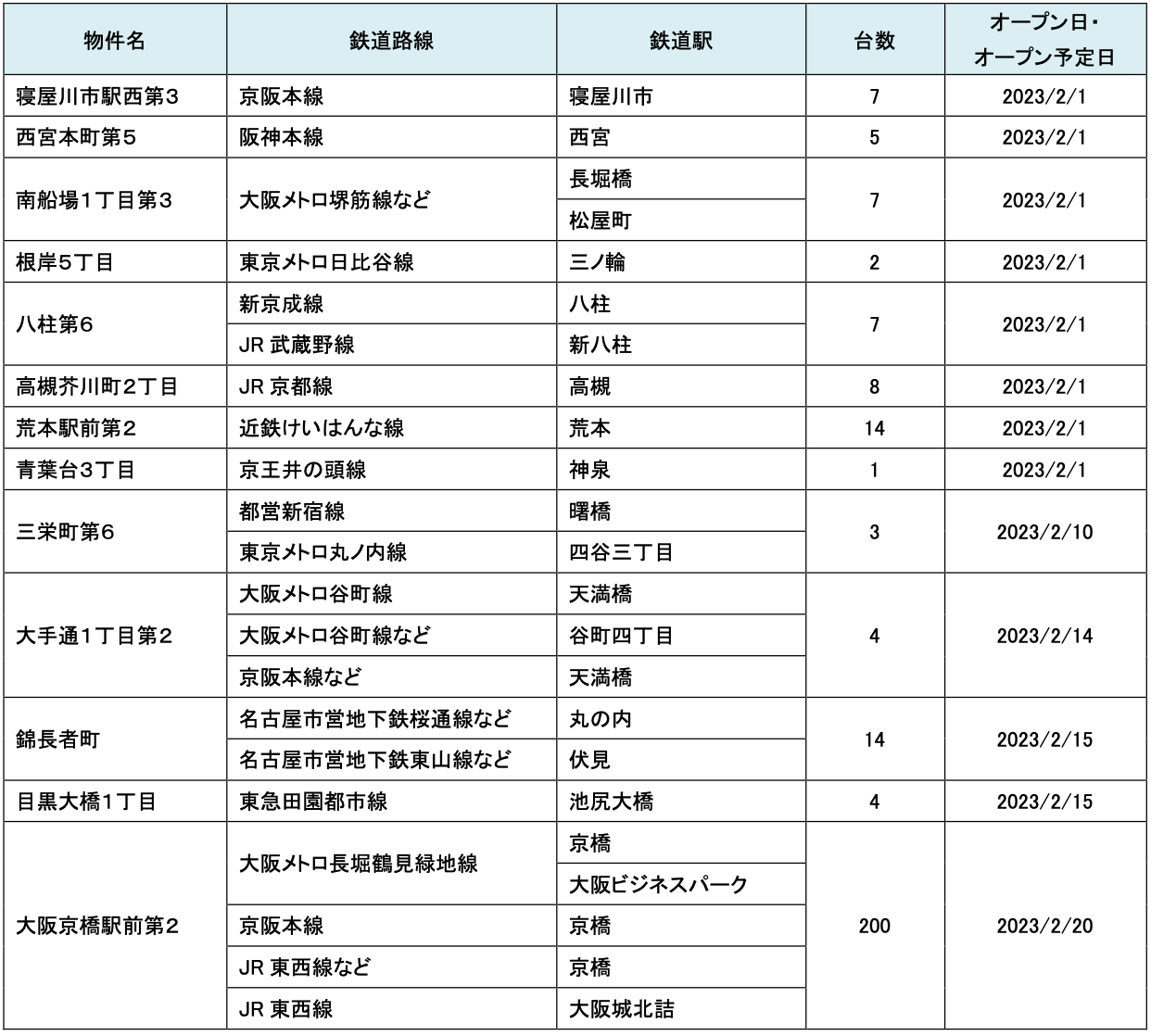 駐車場およびカーシェアステーションのオープン予定については毎月第5営業日にお知らせいたします。