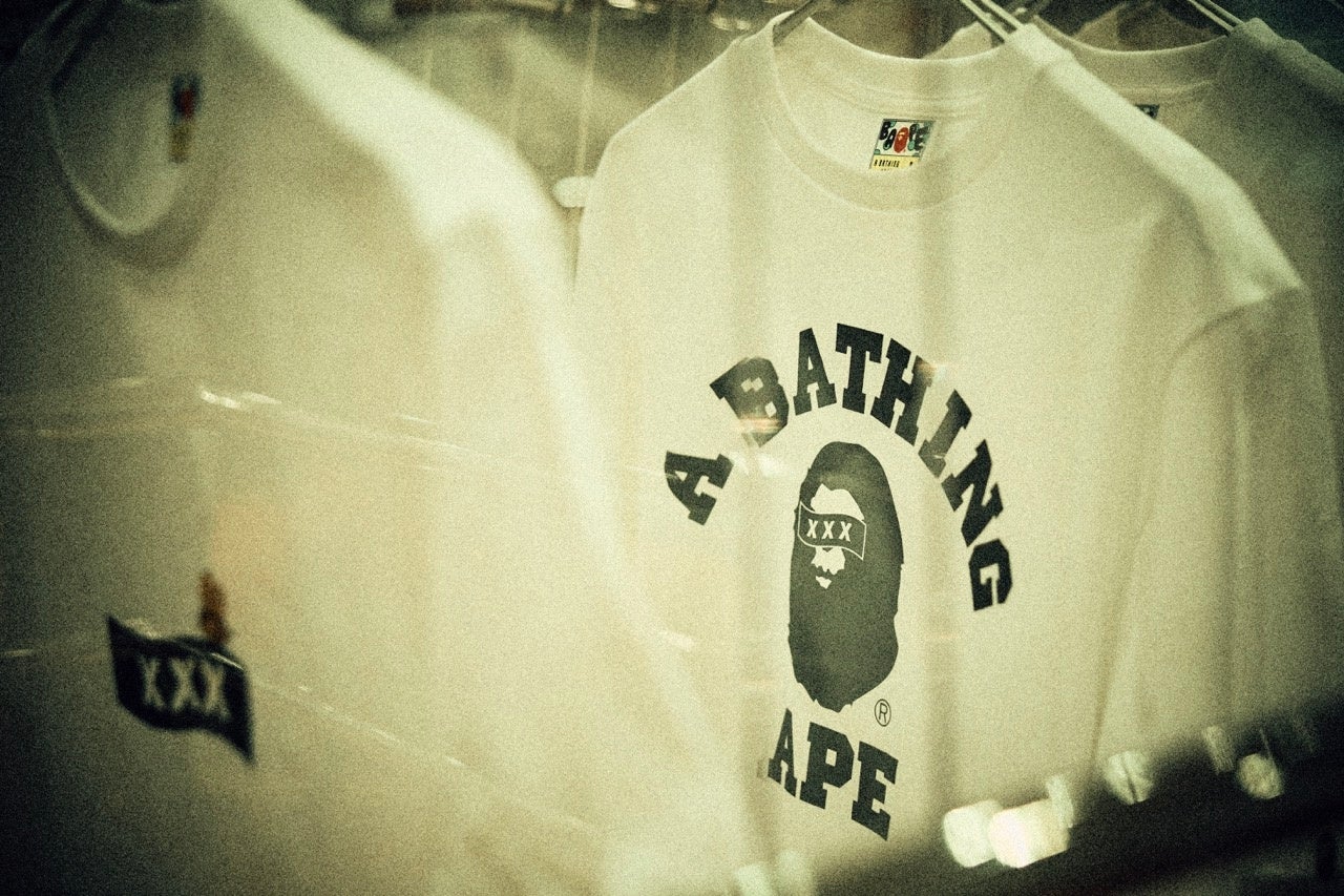 「GOD SELECTION XXX」とのコラボコレクションは、2024年4月28日(日)にA BATHING APE®正規取扱い店舗およびBAPE.COM WEB STOREの正規取り扱い店舗、「GOD SELECTION XXX」にて、数量限定で発売します。