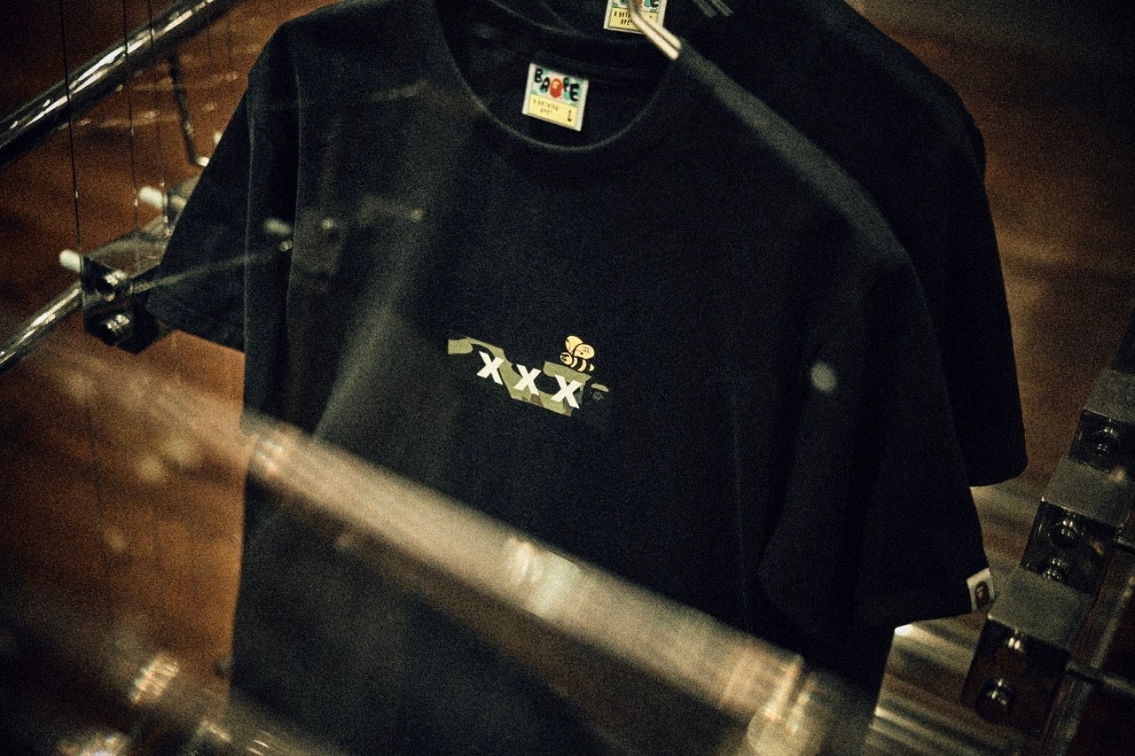 Tシャツは、APE HEAD、COLLEGE LOGO、BAPE®︎ BEE、BABY MILO®︎、BEETHOVEN、GENERALといったBAPE®︎の定番グラフィックを「XXX」のロゴでアレンジ。