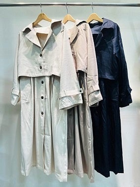 3通りで着用できる万能なトレンチコート。ショート丈ブルゾン、ジャンパースカートとしても着用出来るので、インナーやブラウス合わせで春らしくコーディネートしていただけます。