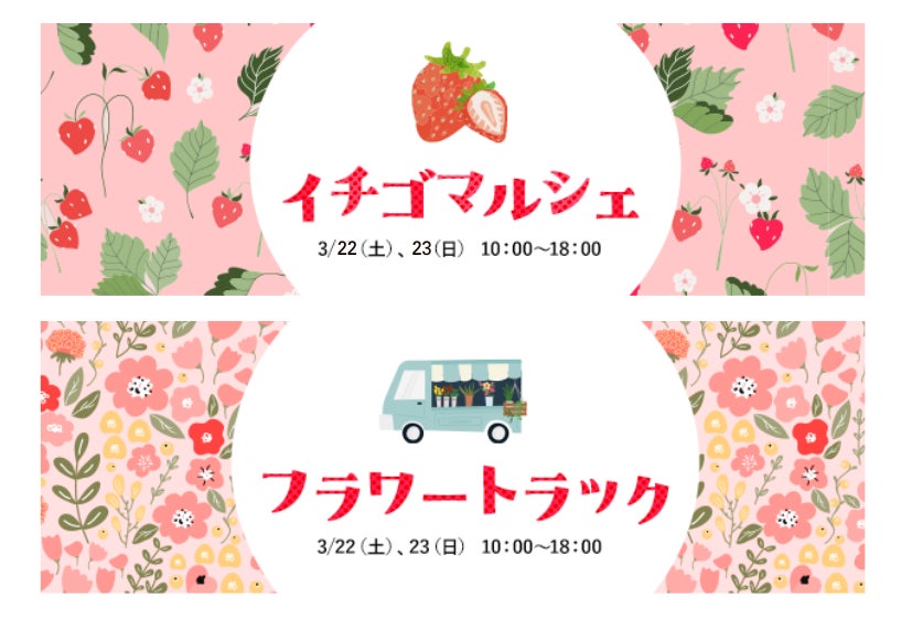 様々な品種のいちごの販売や、いちごを使ったスイーツなどを販売する「イチゴマルシェ」、フラワートラックによるお花の販売など、春の訪れを感じられるイベントを開催します。