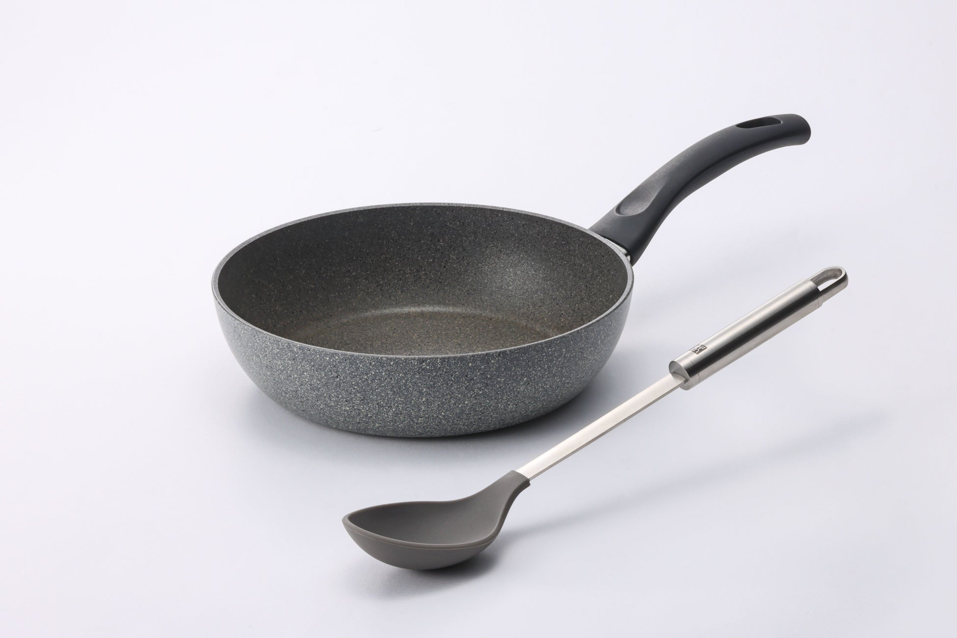 ・【50%OFF】レシピBOOK付きの深型フライパンとサービングスプーンのセット「フェラーラ深型フライパン(24cm)+シリコンサービングスプーン」(\10,230→¥5,115)