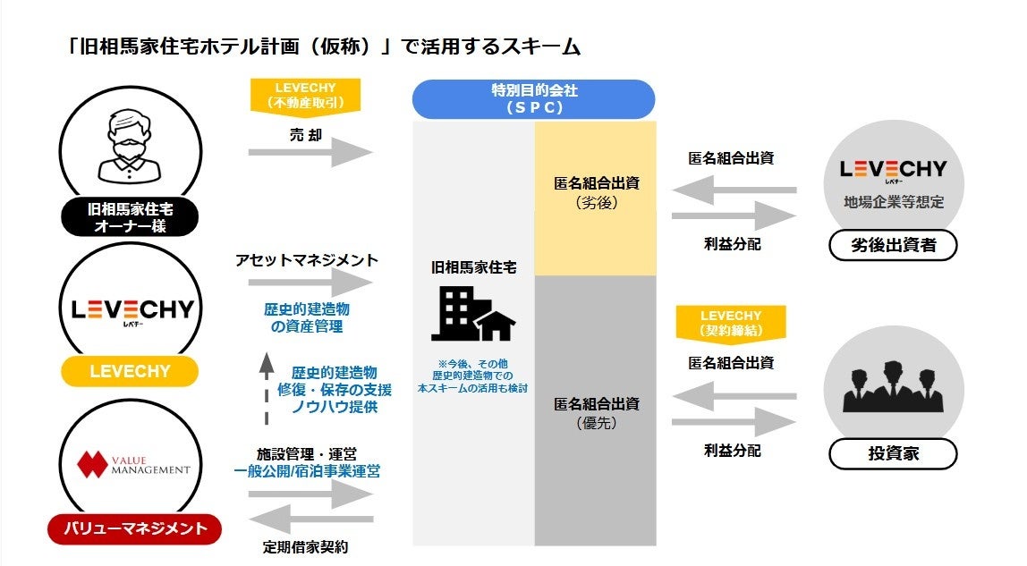 ファンド成立後は、 レベチーが設立したSPC(特別目的会社)が「旧相馬家住宅」を維持・保存し、当社がホテル運営を担う予定となっています。