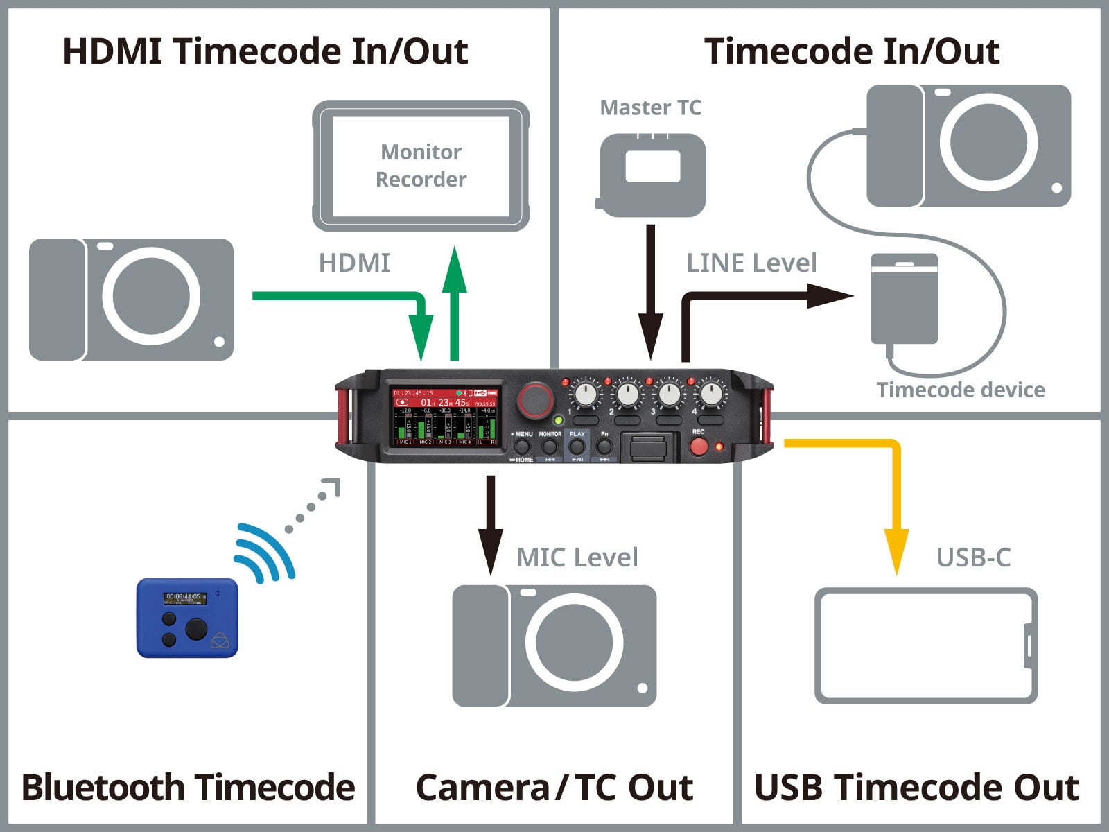 カメラとレコーダーを柔軟にタイムコード同期