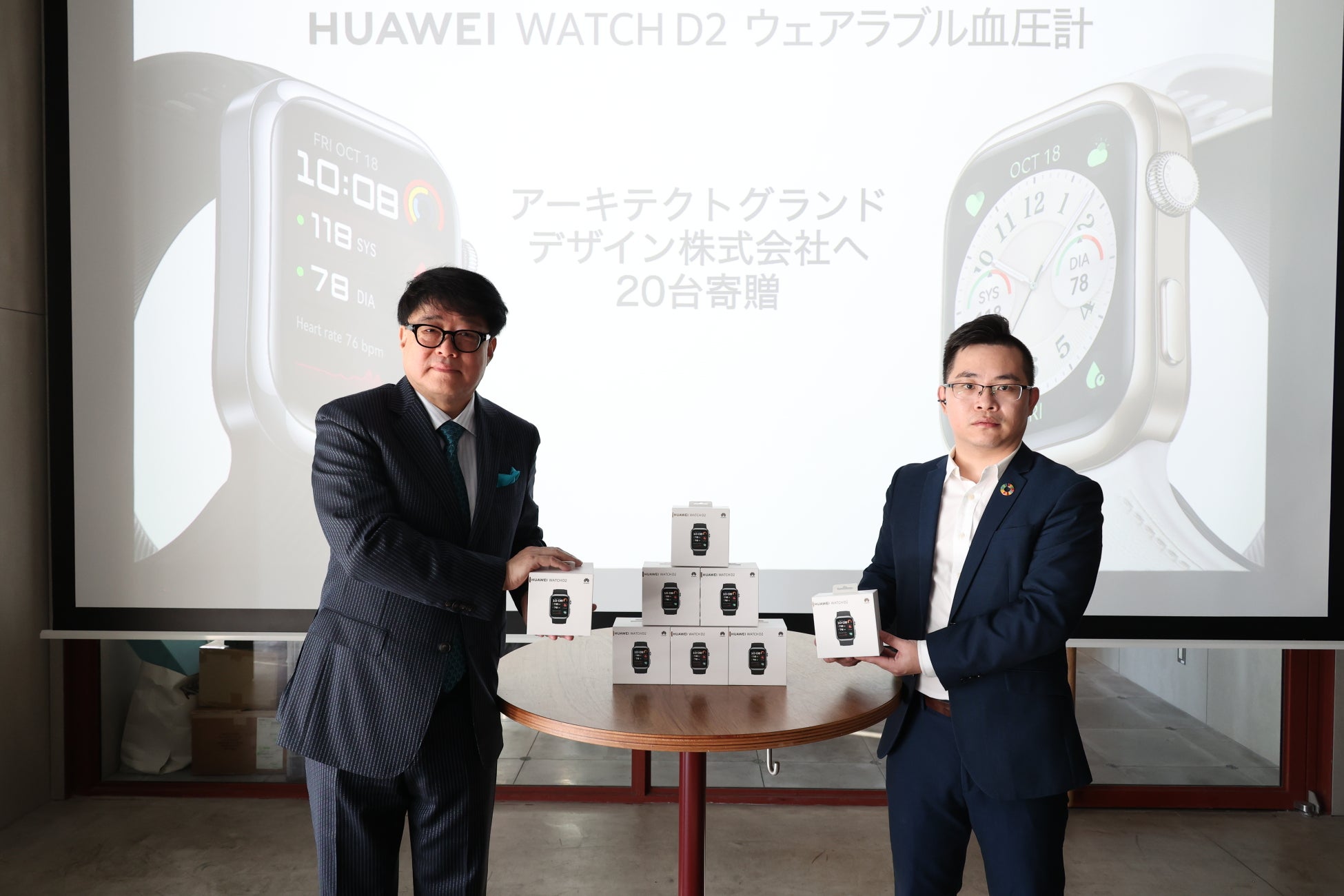 ファーウェイの掲げる「Health Forward」の信念のもと、『HUAWEI WATCH D2 ウェアラブル血圧計』の前モデルである『HUAWEI WATCH D ウェアラブル血圧計』は、2024年1月に、「ハイテク分野のグランドデザイン」を手掛けるアーキテクトグランドデザイン株式会社様へと寄贈され、岡山大学公衆衛生学 神田秀幸教授の指導助言を受けながら、同社の行う実証研究に用いられました。