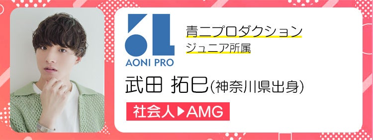 『スター・ウォーズ』のように幅広い世代から長く愛される作品で役を勝ち取り、自分自身も「このキャラクター、この俳優の声といえば武田拓巳だよね」と、愛される役者を目指します。また、CM撮影の経験から、実写映像のお芝居や舞台など、顔を出す仕事にも積極的にチャレンジしていきたいです。