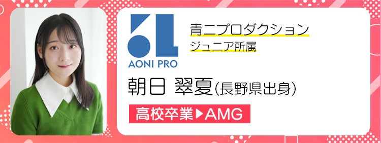 青二プロダクションや81プロデュースなど、AMG卒業生も数多く所属する大手プロダクションへの所属合格を実現しています。