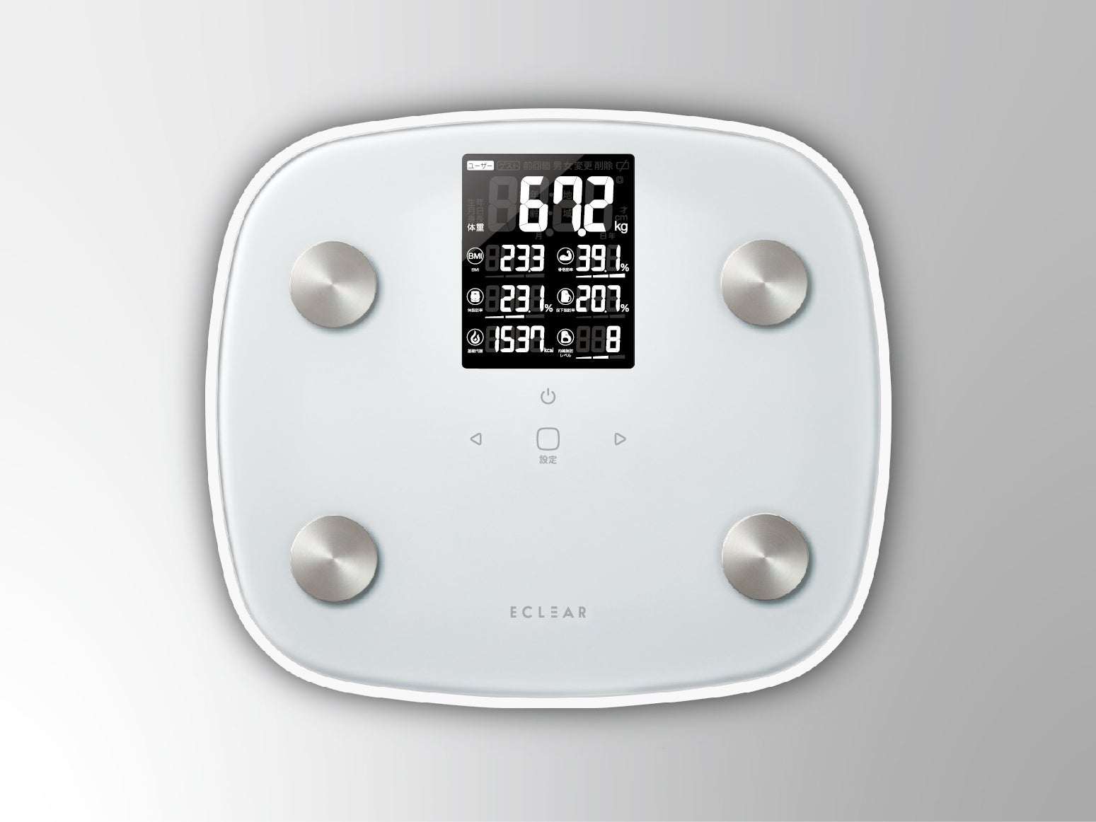 測定項目全てをすぐに確認することができる大画面液晶体組成計です。体組成計を使用するユーザーインタビューでは、測定結果がすべて表示されるまで待つ時間は、悪い結果になっていないかと不安であり、時間も長く感じてストレスになっているという声が上がりました。従来の体組成計は、製品本体に足を乗せてから全ての測定項目の数値が表示されるまで、既存品では、約30秒間も待つ必要があるものもあります。本製品は足を乗せてからわずか約10秒ですべての項目を確認できます。