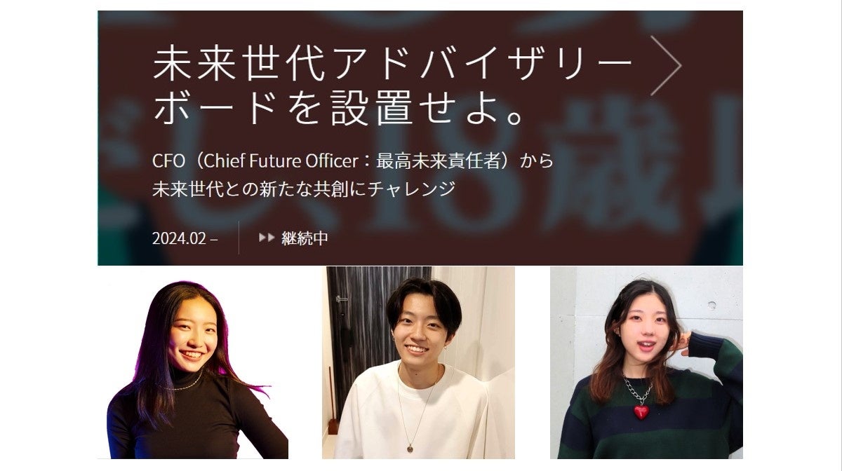 昨年、次なるサステナビリティの取り組みに向けて4代目CFOを募集し、素晴らしい考えを持つ多くの未来世代の方々がエントリーしました。しかし、「Sustainability First」を体現していくための専門部署が当社内で発足したこと、CFOのような未来世代との取り組みが企業や行政などで広がりつつあることなど、当社が目指していた未来世代との取り組みや未来世代の社会参画が社内外で普及したことから、「提言」型であったCFOの取り組みから次のフェーズへ進み、未来世代との「共創」を目指していくべき、という結論に至りました。