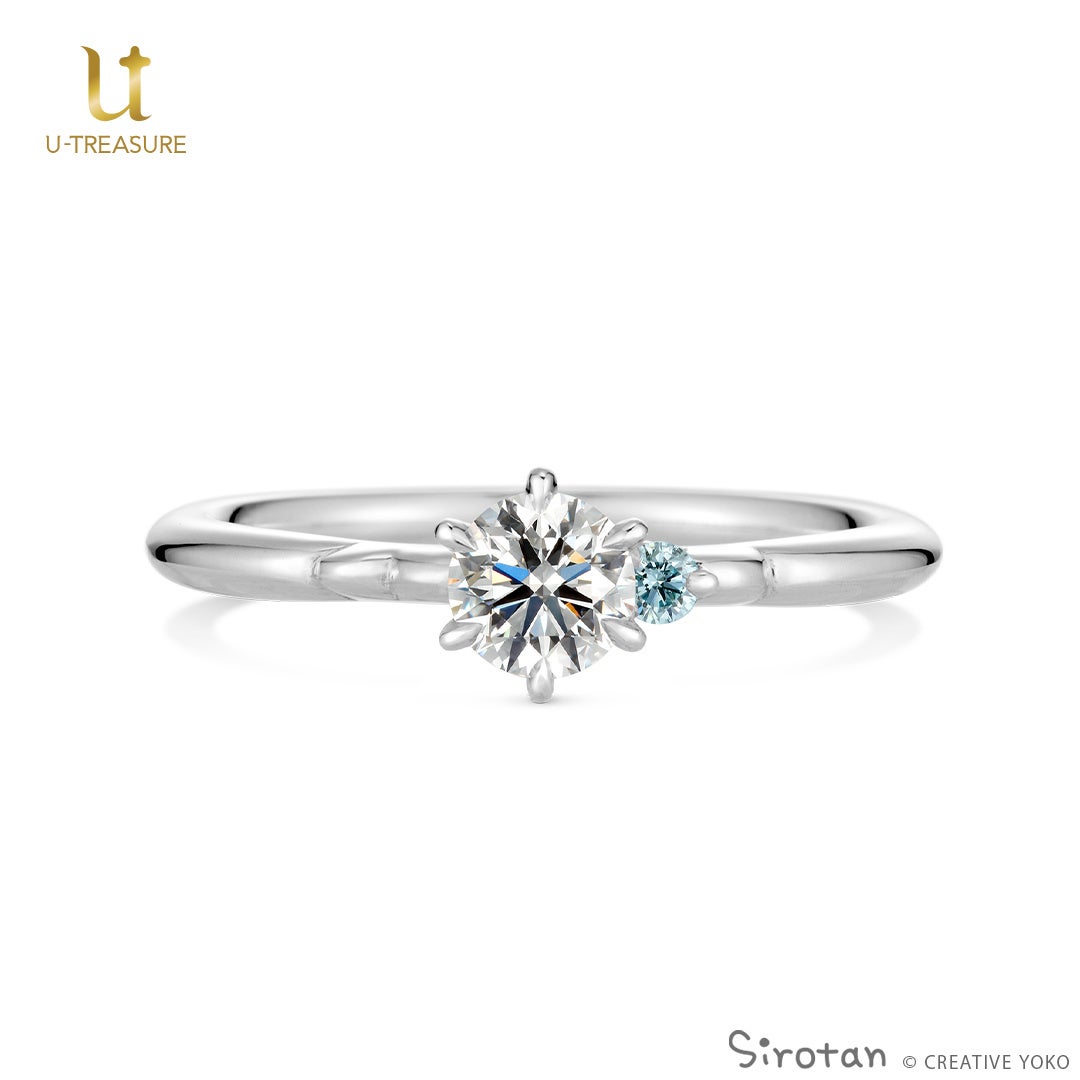 ダイヤモンドの隣には、青空をイメージして淡いブルーのダイヤモンドをセッティング。