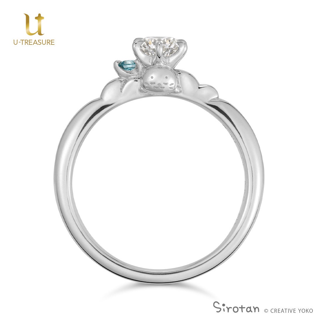 しろたんがふわふわな雲の上にいるようなデザインのエンゲージリング。