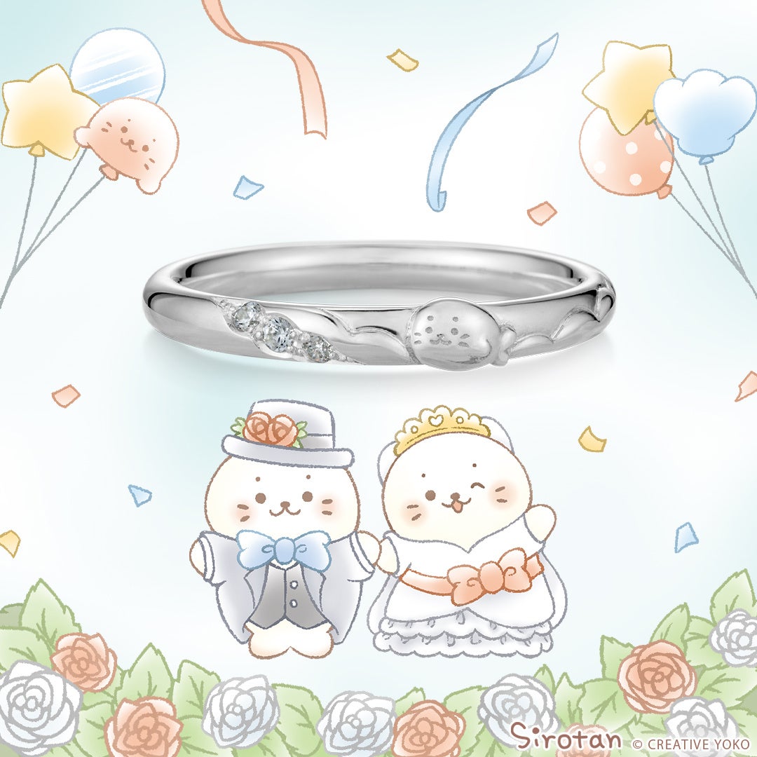 【しろたん】ブライダルリング。ふわふわエンゲージリング&マリッジリング。しろたんの表情が両面で楽しめる婚約指輪。結婚指輪はワンポイントにしろたんをあしらった2デザイン。8月22日(火)発売