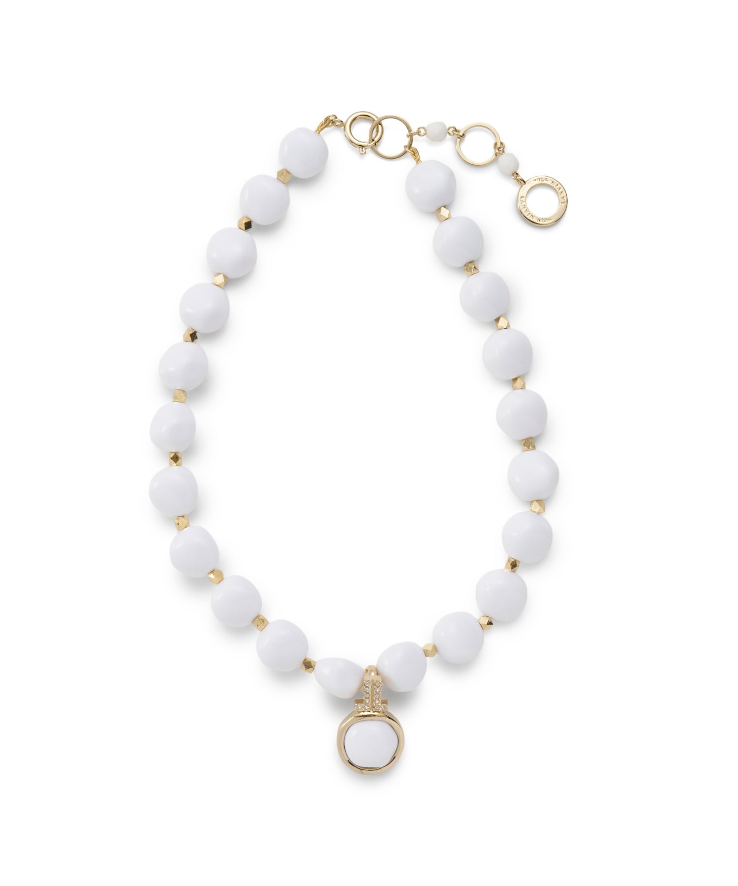 ヴィンテージムード漂うレトロポップなカラーリングが特徴で、これからの季節に活躍する存在感のある大振りなデザインが大人の品格を演出。ネックレスはトップパーツの取り外しが可能な2way仕様。ミルキーなホワイトと鮮やかなターコイズの2色展開です。
