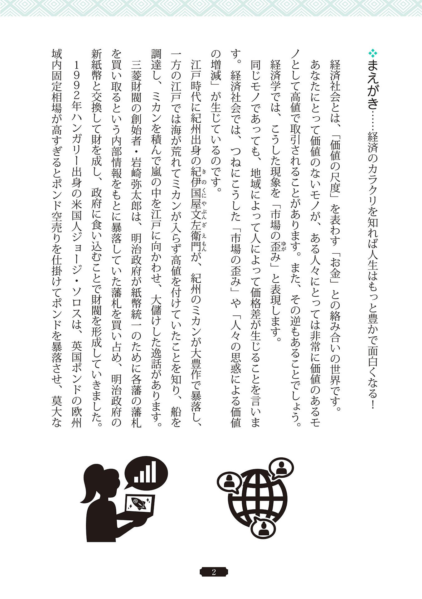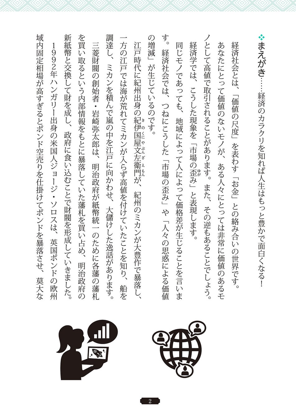 経済の原理やメカニズム、しくみやカラクリを知らずには現在の世の中を賢く生きることはとてもむずかしいと言えます。買い物から税金、日常の消費生活で遭遇するあらゆる場面にも、必要な「経済」の視点を取り入れておトクで賢い人生を送りましょう。本書で学べば、あなたも経済ツウになれること間違いなし!