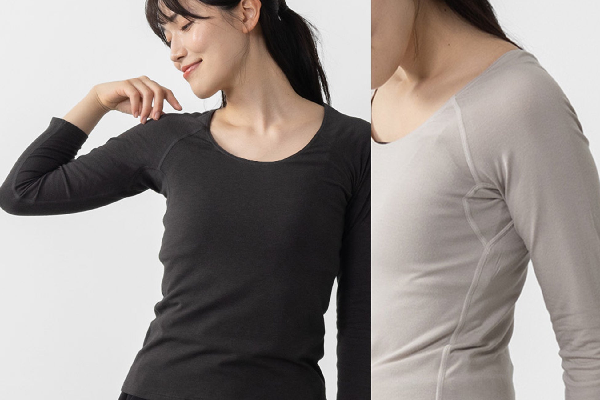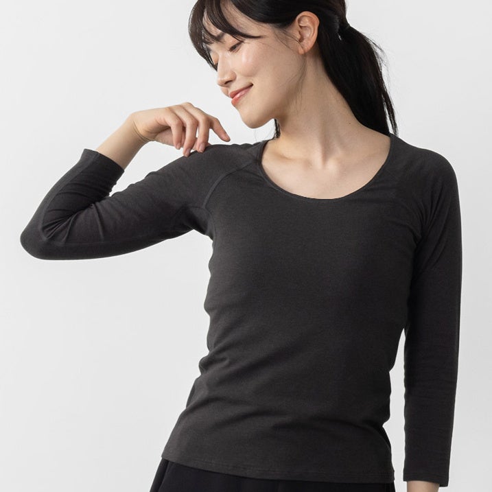 肩や腕が動かしやすく、ズレにくいオリジナル設計で、家事や育児、通勤など日常の動作もスムーズに。寒暖差のある日でも、重ね着しても、快適に過ごせるあたたかインナーの登場です。