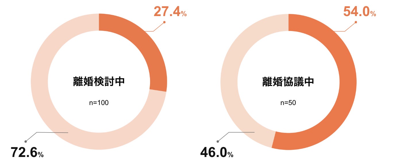 離婚視野の回答者(150名)は33.3%、離婚協議中(50名)の54%が「知っている」と回答 |