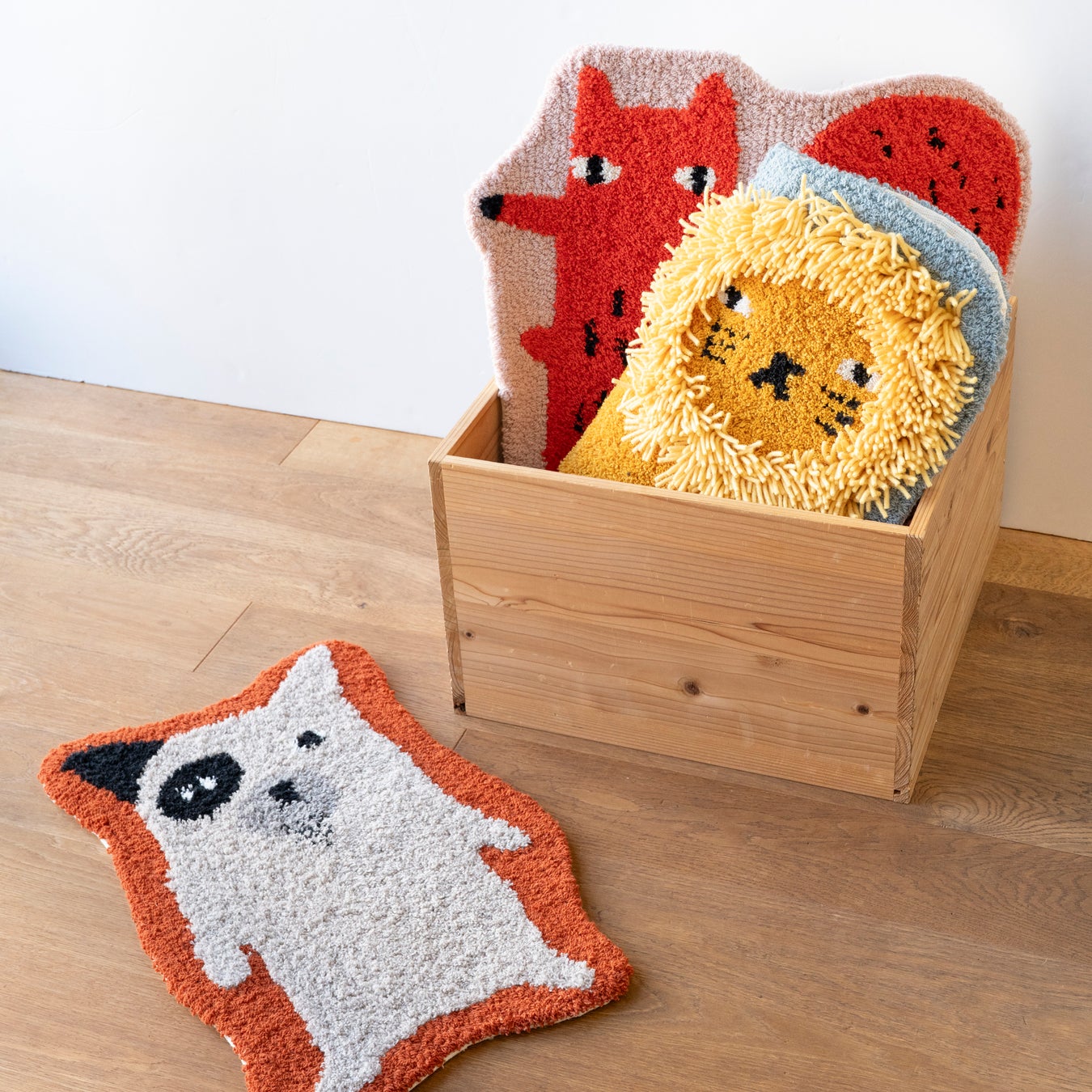 それぞれのかたちに切り抜かれたダイカット仕様で、玄関やソファの足元、ベッドサイドなど、どこに敷いても楽しいアクセントに。ぎゅっと目の詰まったしっかりとした質感も魅力。お気に入りのクリーチャーを1枚だけ選んでも、いくつかを並べてディスプレイしても楽しいラグです。