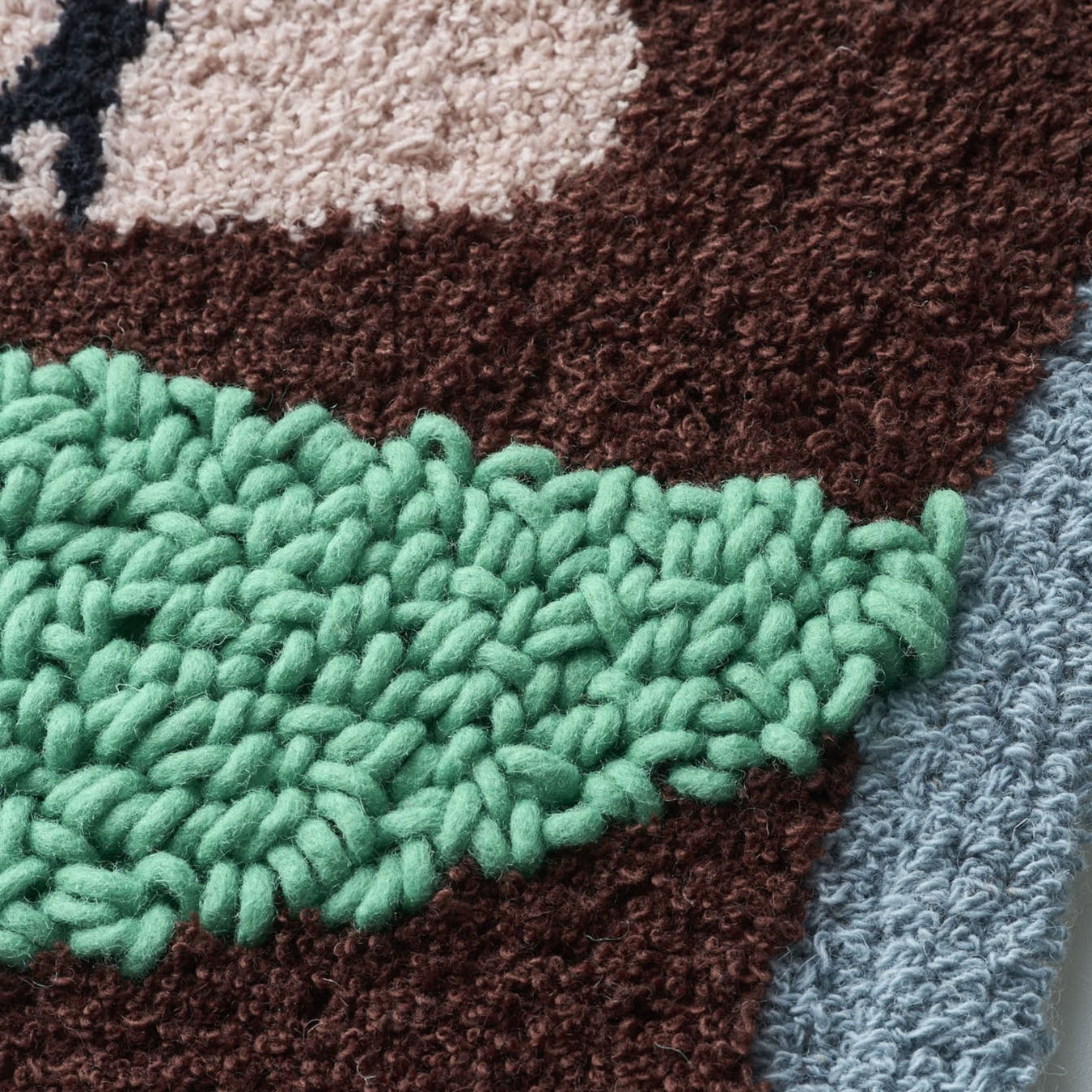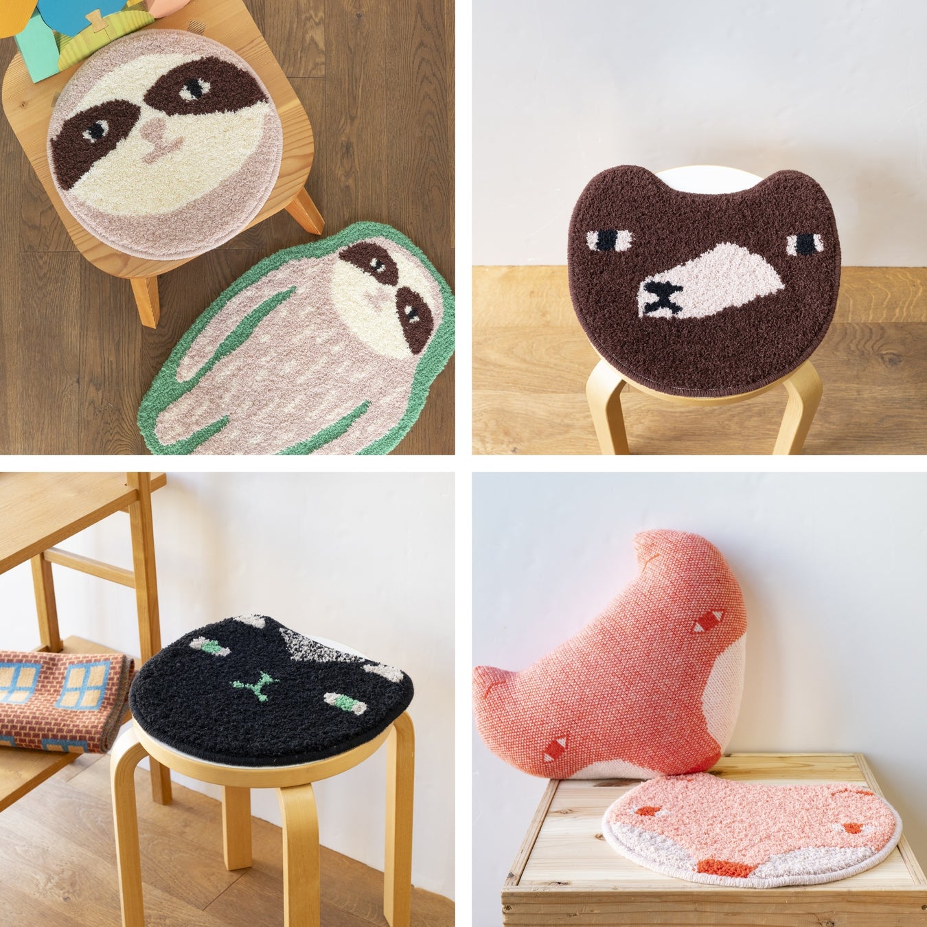 ドナ・ウィルソンのクリーチャーたちが、ダイカットのマットとチェアパッドになりました。ウール100%で作られた日本製のマットは、湿気の多い季節もさらりと快適。素足に気持ちよく、夏のお部屋にも心地よくなじみます。