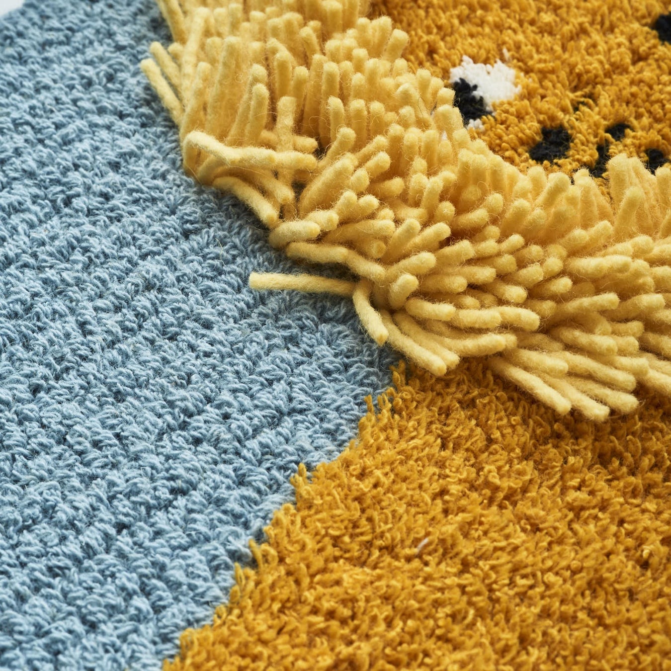 アクセントラグを取り入れたことのない方にも、気軽に楽しんでいただけます。それぞれのクリーチャーによって、かたちやサイズがさまざま。たとえば、ライオンのリッチーはたてがみ部分がふわふわの質感に、クマのテッドはスカーフの部分の糸の太さや織り方を変えるなど、細部にこだわりが詰まっています。