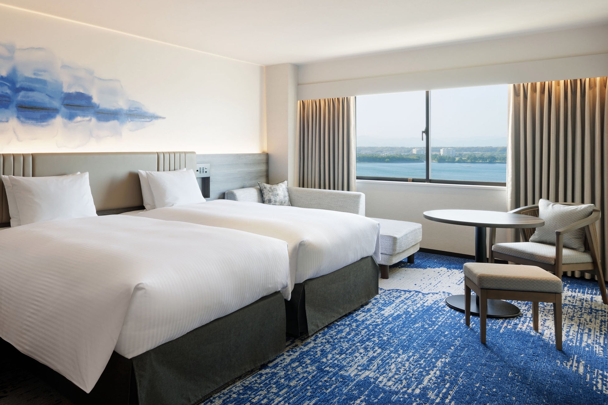 2024年4月にリニューアルした36㎡以上のゆったりとした客室です。浜松の型染めの伝統工芸技法と、ホテル目の前に広がる浜名湖からインスピレーションを得た壁面アートが特徴です。