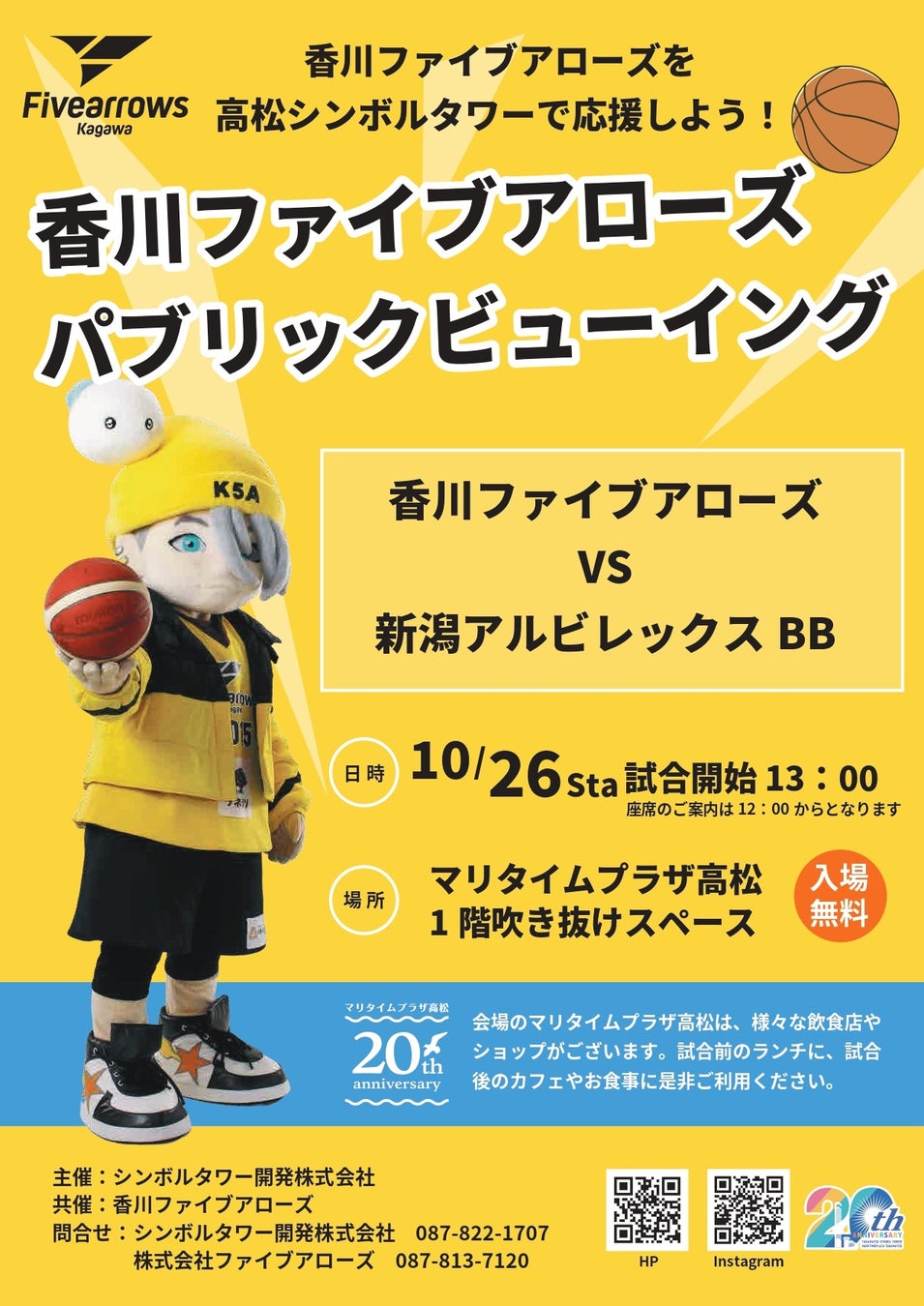 【香川ファイブアローズ】10/26(土) パブリックビューイング開催!!
