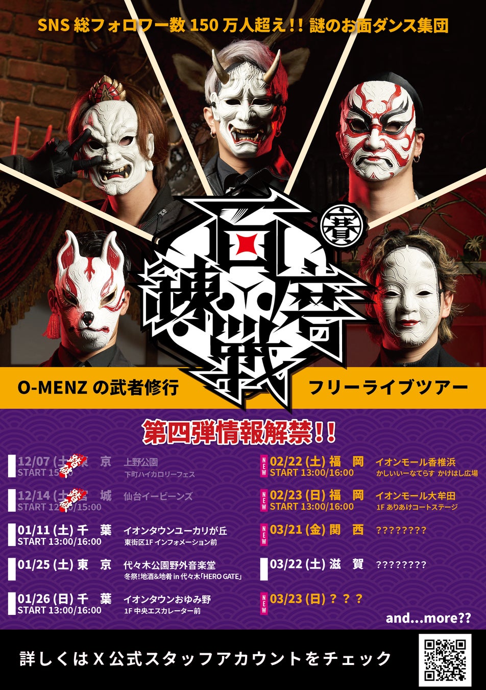また、2024年12月から開催され、毎回大好評を博しているO-MENZのフリーライブツアー「百戦錬磨-賽-」の第四弾情報も解禁された。現在明らかになっているスケジュールは以下の通り。