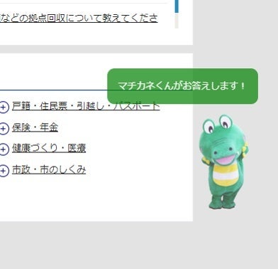 ② これまで、市ホームページ内の検索機能は、トップページの検索窓だけでしたが、マチカネくんチャットボットは、市ホームページ内のすべてのページで表示されます。閲覧しているページからチャットボットを使った検索ができるようになります。