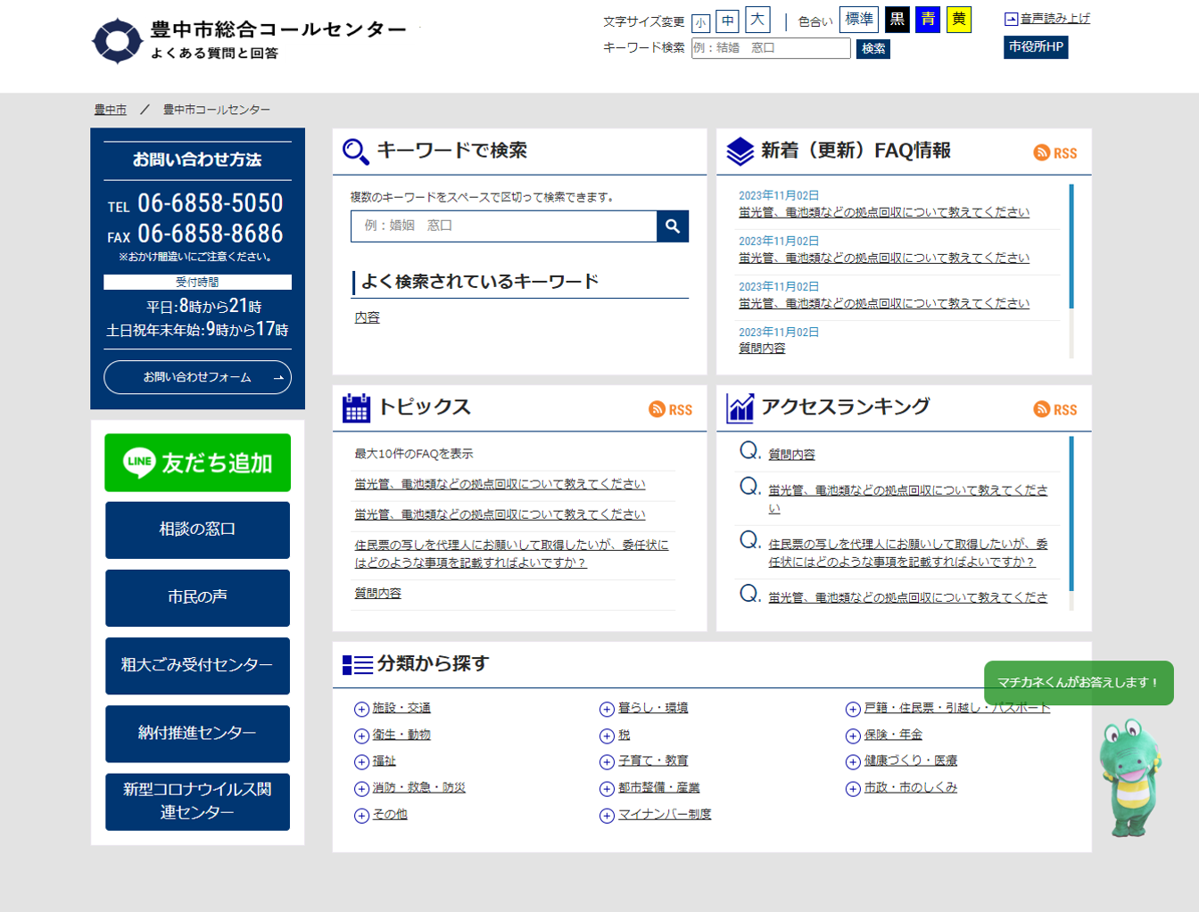 豊中市は、12月1日(金)から市ホームページに市キャラクター・マチカネくんのチャットボットを導入します。チャットボットに質問を入力すると、市に寄せられる「よくある質問」の中から、関連性の高いものを検索して提示します。