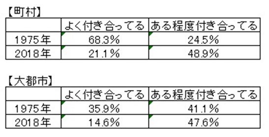 大都市・町村を問わず「ご近所付き合い」は低下傾向