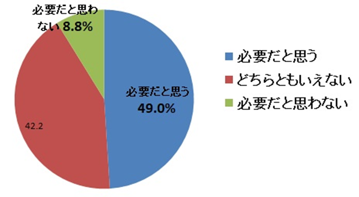 ご近所付き合いは49%が「必要だと思う」と回答したのに対し、「必要だと思わない」は8.8%にとどまっています。