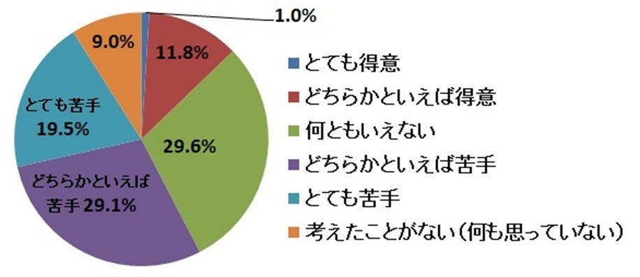 「とても得意」と「どちらかといえば得意」を合わせても12.8%。一方「とても苦手」と「どちらかといえば苦手」の合計は48.6%と半数近くもあります。