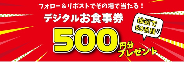 その場でデジタルお食事券500円分が50名様に当たるXキャンペーンも同時開催!