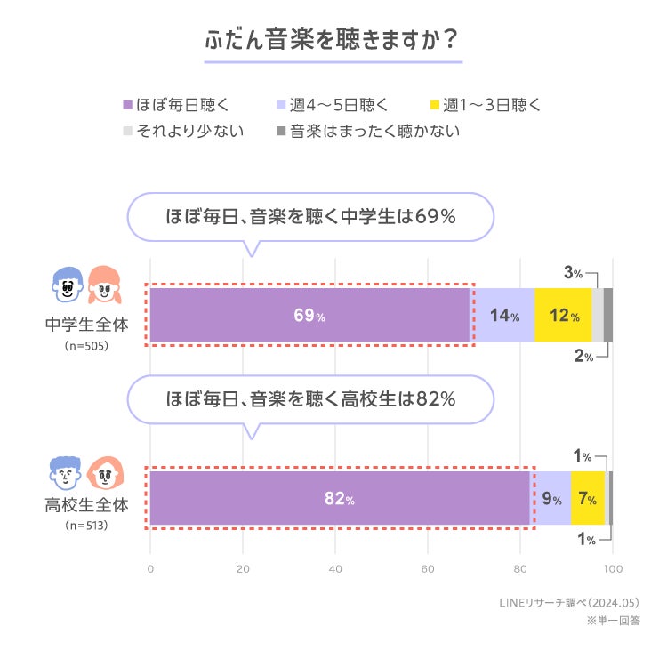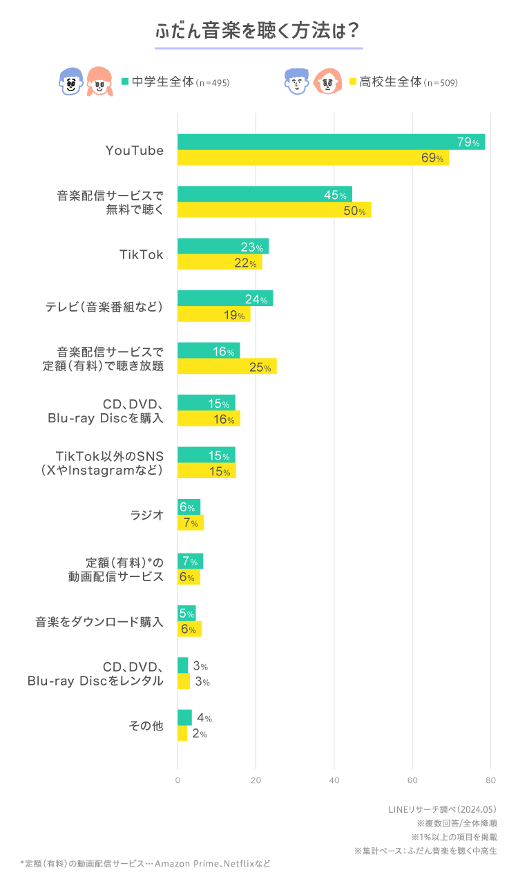 このたびLINEリサーチでは、全国の中高生を対象に、音楽を聴く方法や、好きなミュージシャンについて調査しましたので、その結果をお知らせします。