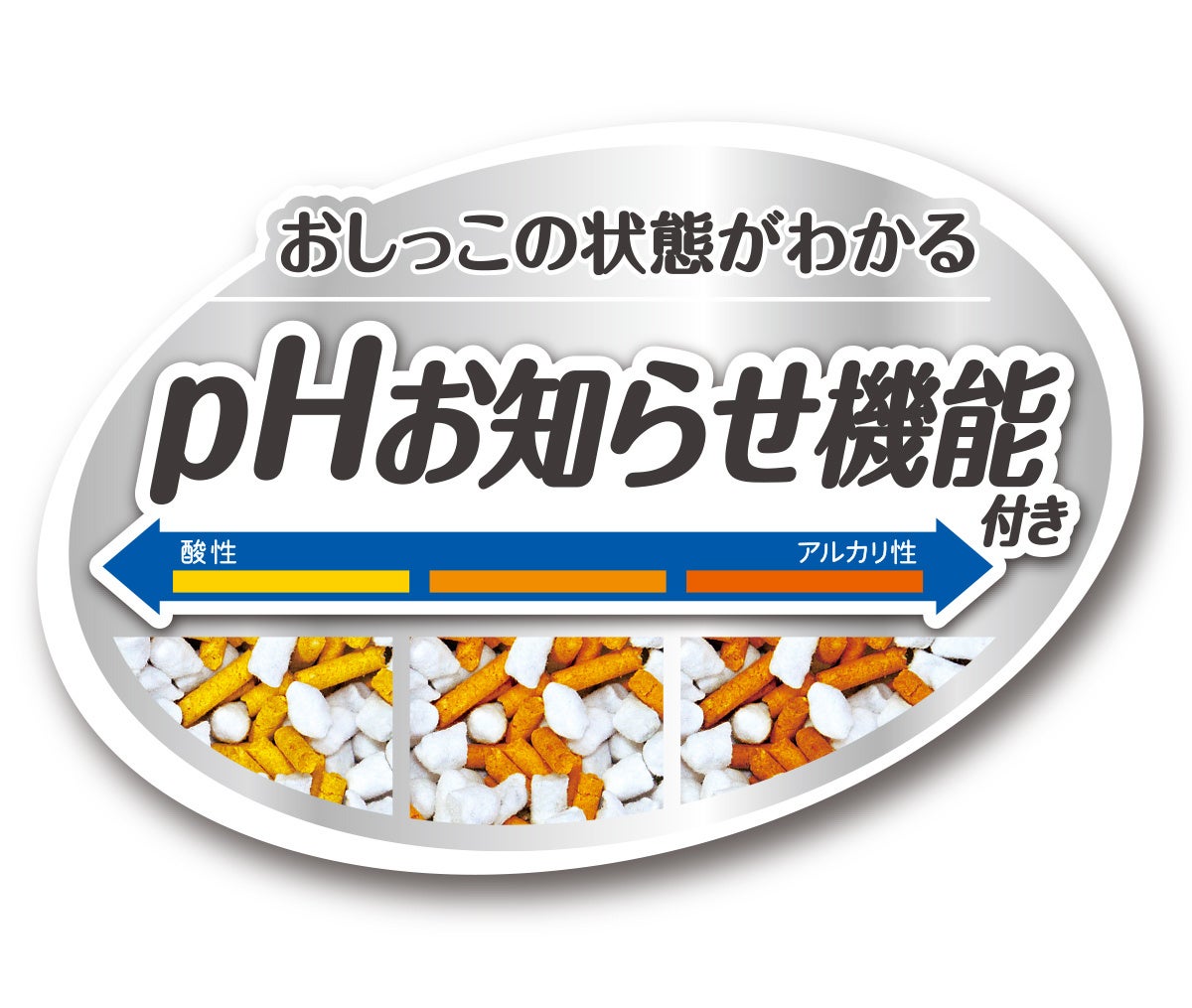 ・色の濃さや血尿など、おしっこそのものの色が分かりやすい白い砂と、おしっこのpH※によって色が変化するpHお知らせ機能付きの黄色い砂の2種類の砂をブレンドしています。