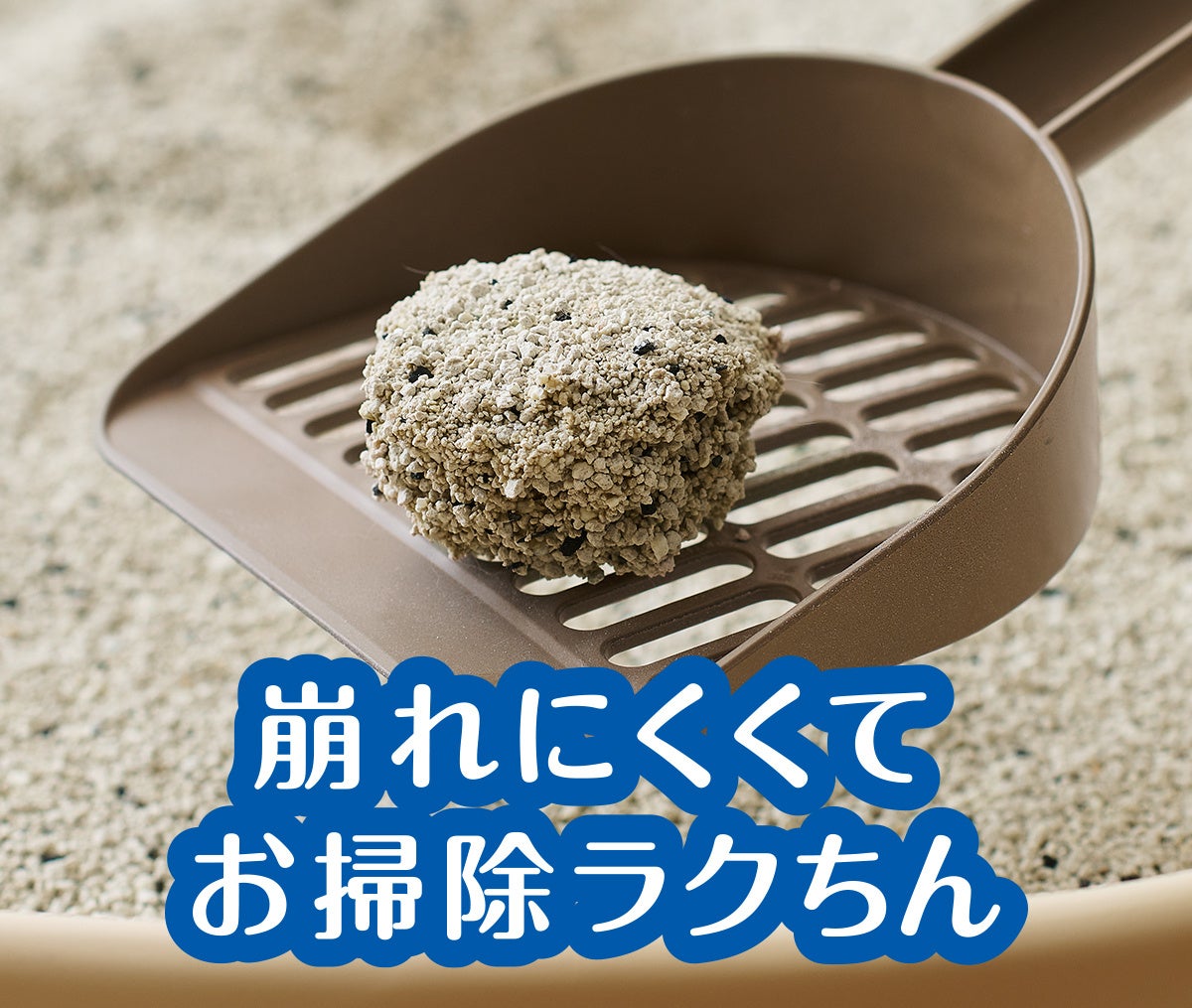 ・砂がうんちをコーティングして、防臭効果アップ。気になるうんち臭にも消臭効果が長続きします。
