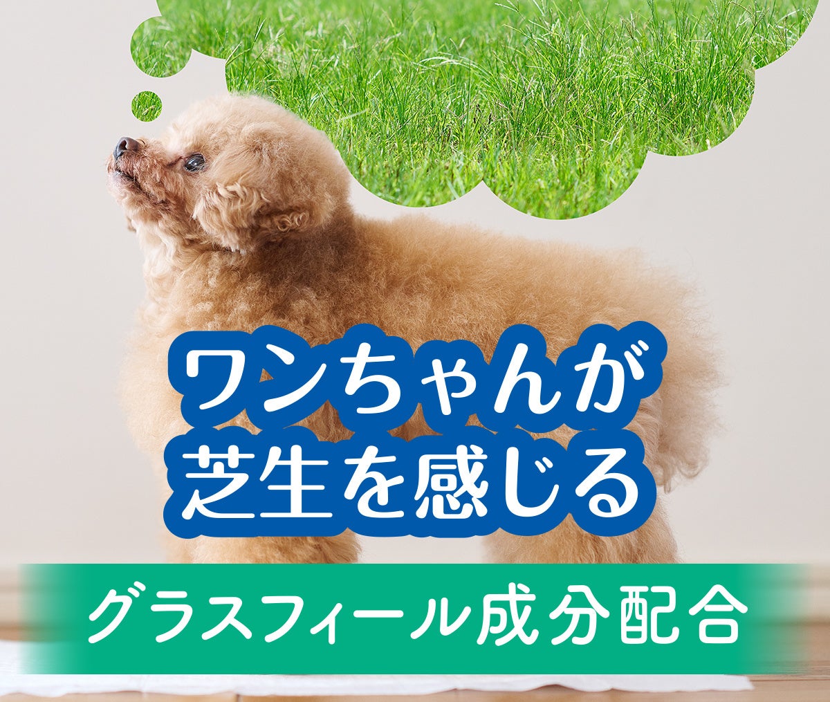 ・お外でトイレ気分、ワンちゃんが芝生を感じるグラスフィール成分を配合しています。