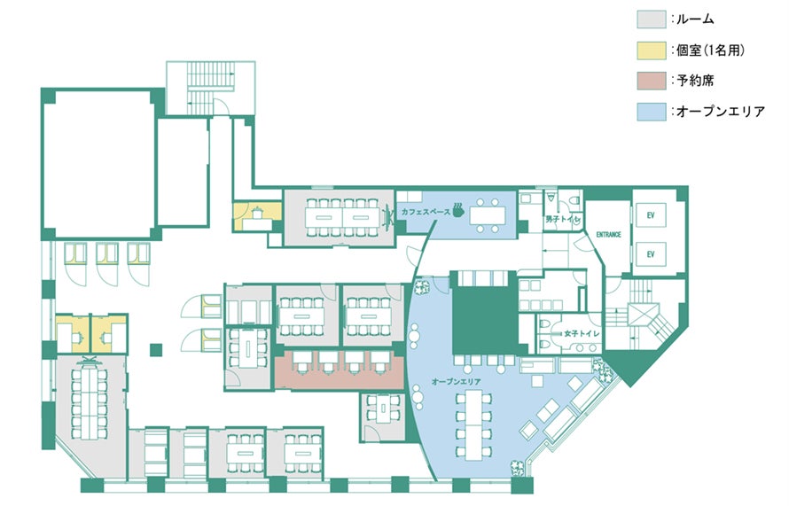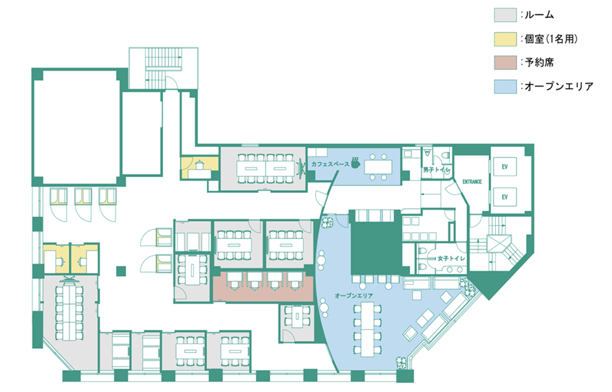 オフィス5区画・共用ラウンジ・会議室・予約席・テレブース |