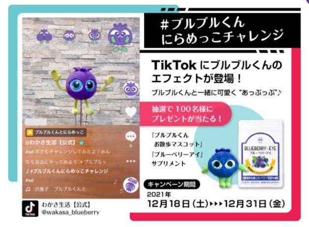株式会社わかさ生活(本社:京都市下京区)はブルブルくんの新CM公開に合わせ、TikTok「ブルブルくんにらめっこチャレンジ!」の楽曲、エフェクトの提供を開始いたしました。