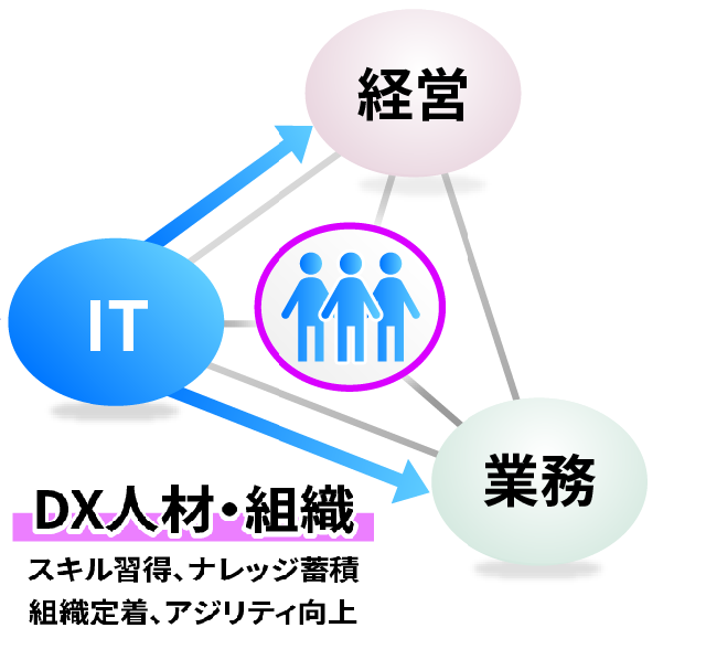 経営、業務、ITの三位一体改革をDXと捉え、お客様に伴走しながらビジネスデザインから実装までを一貫してサポート