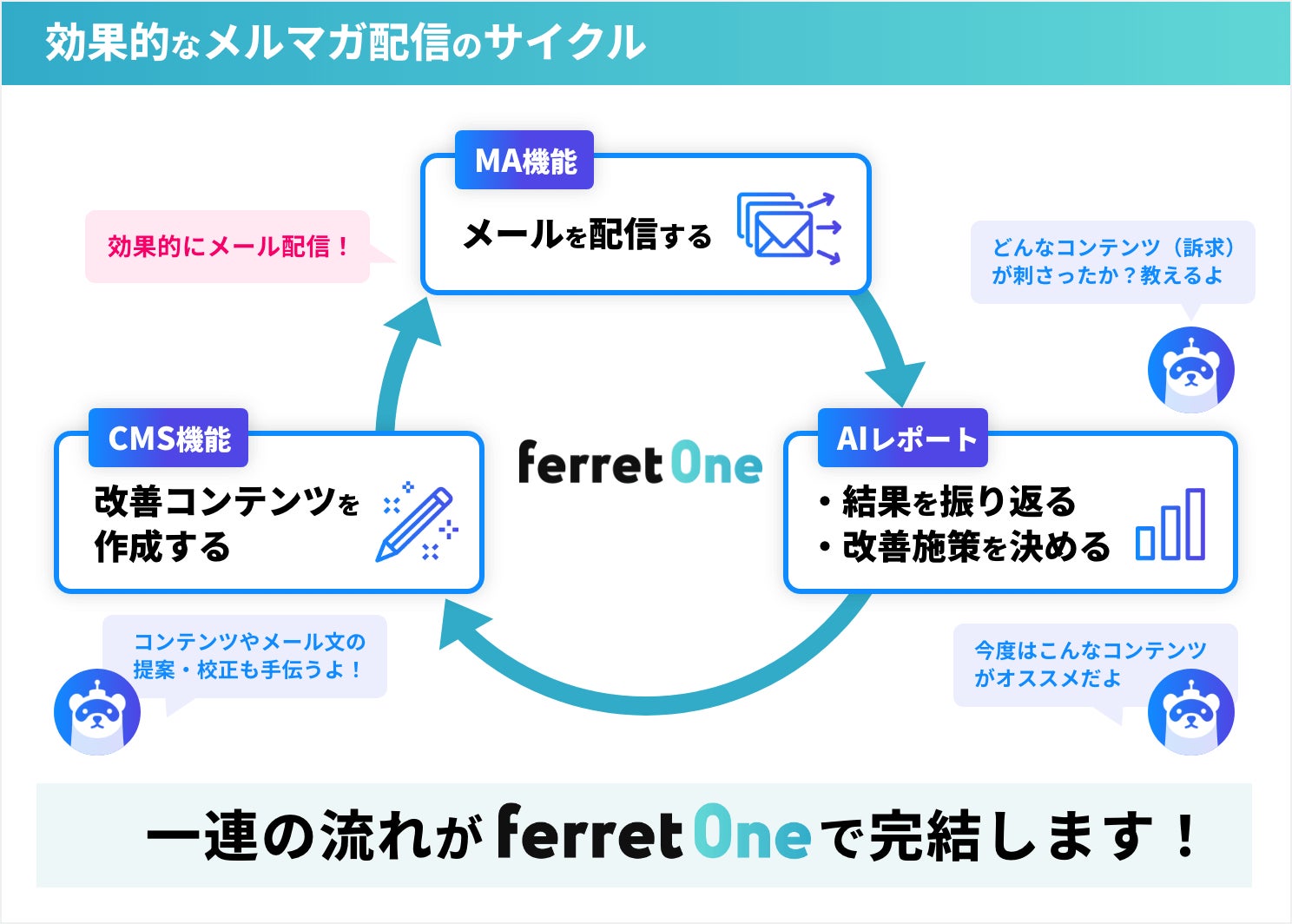 ③ コンテンツ作成・メール文改善まで、『ferret One』1つで最適化が可能。