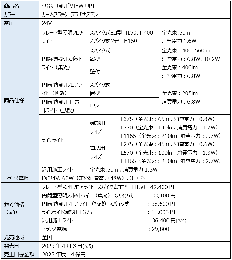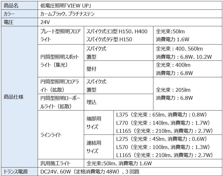 ライフスタイルの変化で増加するおうち時間を充実させるため、住宅の屋外空間のデザイン性を高めるエクステリア商品への関心が高まっており、庭の植栽や空間を演出する照明を取り入れた外構スタイルに注目が集まっています。一方で演出照明は後付けやリフォームの際、従来の電圧100V仕様では工事が大掛かりになること、照明器具のラインアップが豊富過ぎて選びにくいといった課題がありました。そこでYKK APではDC24Vと低電圧仕様のため感電しにくく安全で簡単に施工ができ、住宅外構の照明演出において選びやすいシンプルな商品体系の「VIEW UP」を販売します。