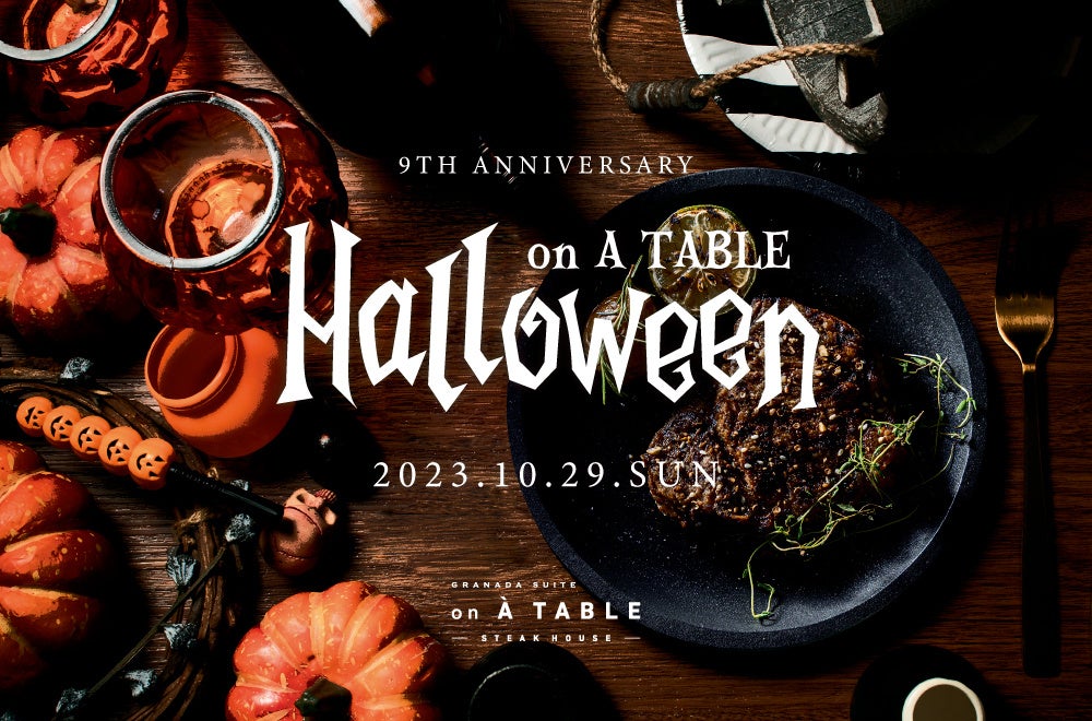 今年は2014年10月3日のオープンから2023年で9周年を迎えることから、日頃のご愛顧に感謝を込めて、お子さまと一緒に、大人同士でもお楽しみいただける1日限りのアニバーサリーイベント「9TH ANNIVERSARY on A TABLE Halloween」を開催。OTらしい迫力満点のジューシーな肉料理を食べ放題に加え、今回は“ハロウィン”をテーマに、この日のために考案されたハロウィン料理をご提供いたします。