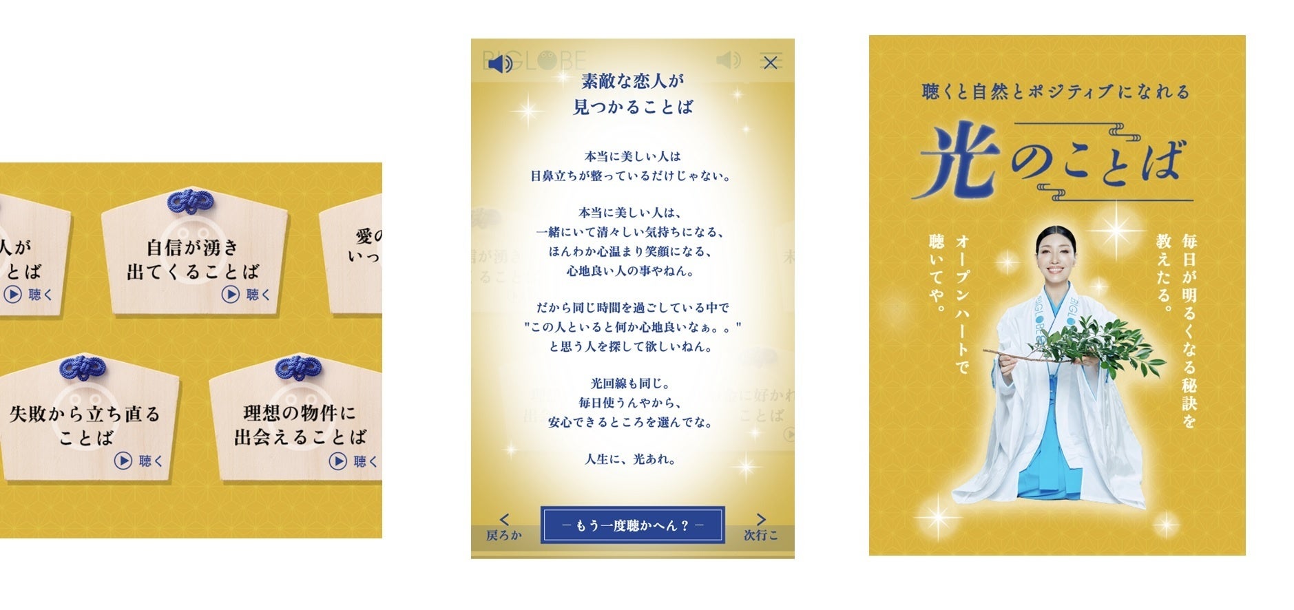 絵馬をタップすると、「自信が湧き出てくることば」や「失敗から立ち直ることば」、さらには「朝からスタートダッシュできることば」や「理想の物件に出会えることば」まで、アンミコが毎日を明るく過ごすためのポジティブな言葉を教えてくれます。