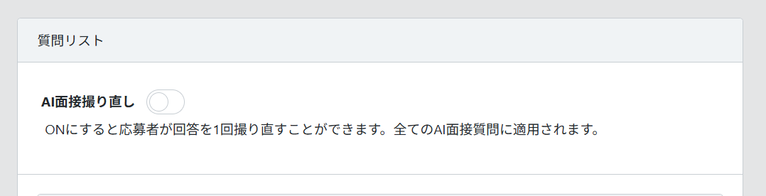 機能をONにすると応募者が回答を1回撮り直すことができます。