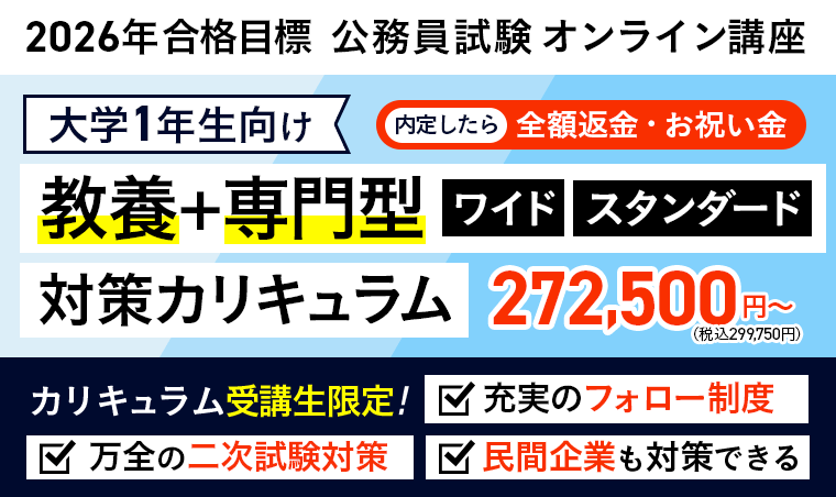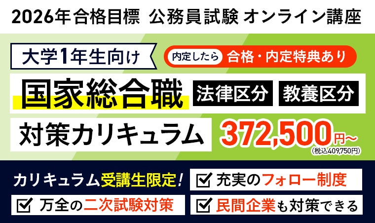 【公務員試験】2026年合格目標 「国家総合職法律区分・教養区分」「教養+専門型ワイド・スタンダード」カリキュラムリリース!