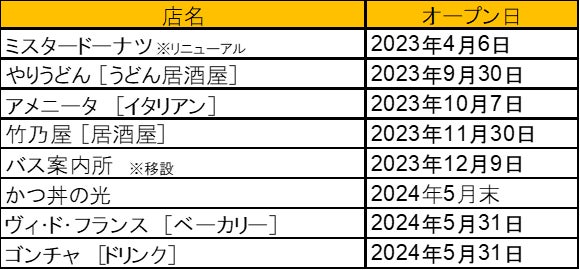 ※上記店舗に加え、2024年9月に3店舗の飲食店をオープン予定です。