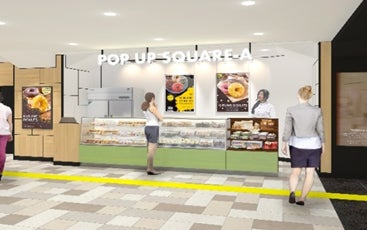 1階「バスセンターエリア」では、バスセンター側店舗ファサードの仕様統一による駅ビルとしての統一感の構築や、東口広場側の店舗入口確保およびガラス化により、開放的で賑わいのある空間の創出を図ります。