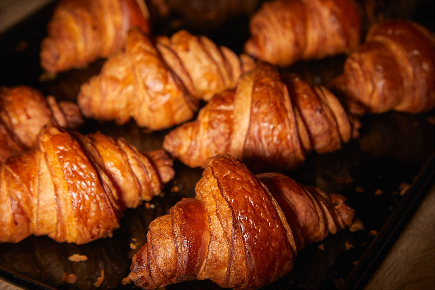 更に自家製法でクロワッサンの生地の折り込みにそれぞれの層と層の間に絶妙に空気を含ませることで、「ザクッ」と食感と、芳醇な発酵バターの香りが「フワッ」と広がります。