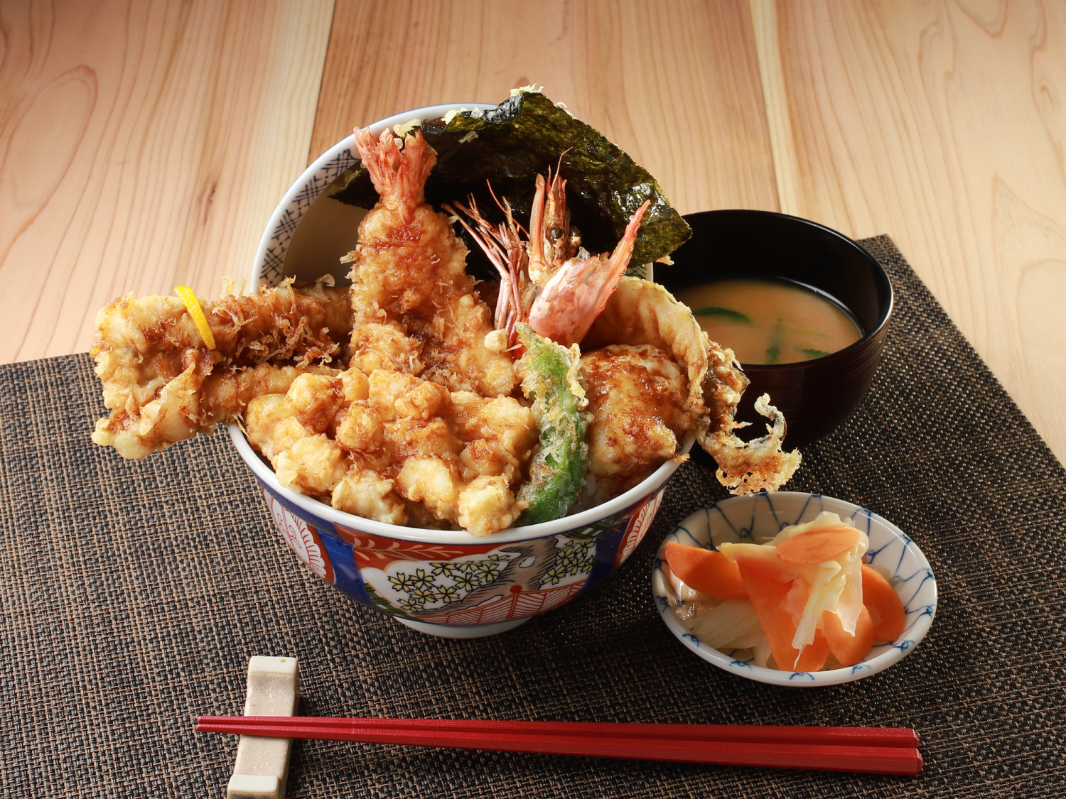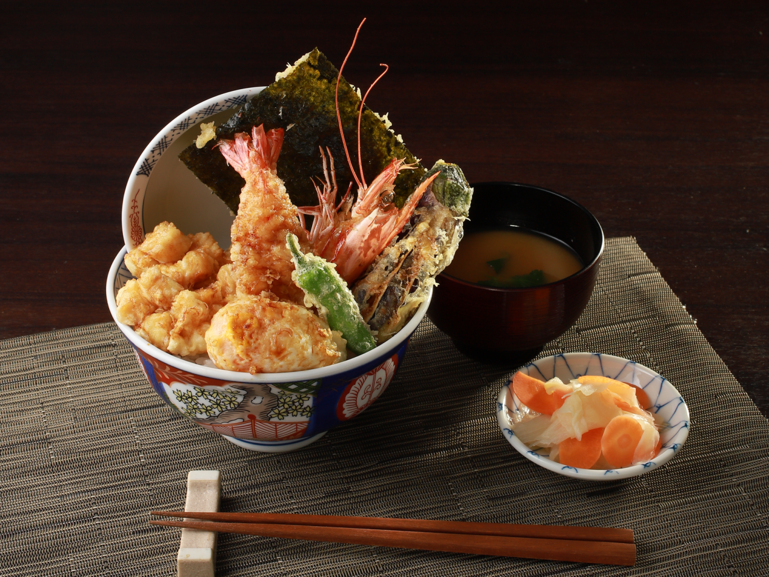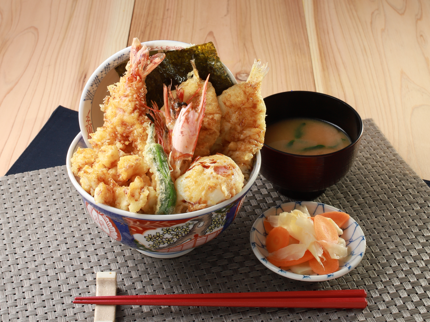 わざわざ電車に乗らなくていい、有名な老舗までいかなくてもいい。一緒に遠出できなかった家族や友人と一緒に、自分へのご褒美や大切な人との記念日に、自宅の近隣でゆったりと食事をする。揚げたての天ぷらを、出汁からこだわる秘伝のタレで仕上げる。素材から仕上げまで見渡せるオープンキッチン。奥行きのある広めのカウンター席では、揚げたての天ぷらを丼に仕上げていくライブ感を楽しむことができます。その他、グループでくつろいでいただけるテーブル席もご用意しております。