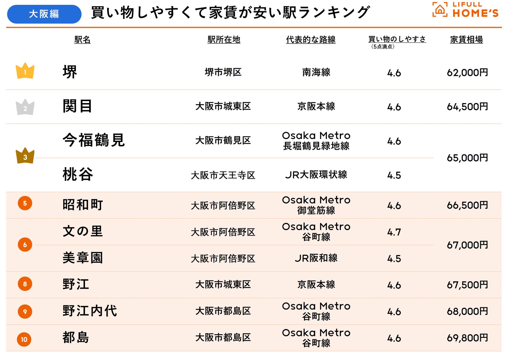 LIFULL HOME'Sが「買い物しやすくて家賃が安い駅ランキング」(東京編・大阪編)を発表!